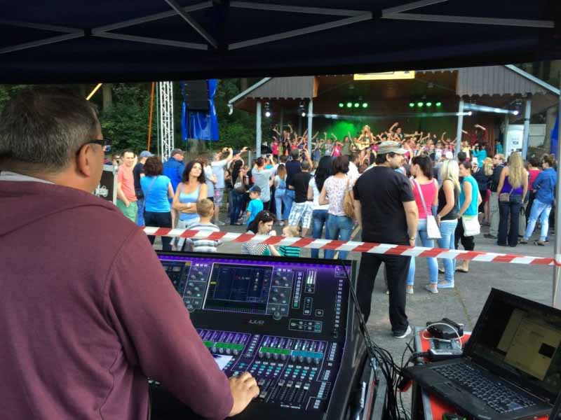 Jako hlavní zvukařský pult byl zvolen digitální mixážní systém dLive (složený z pultu S5000 a MixRacku DM48), který si po krátkém seznámení pochvalovali všichni zúčastnění zvukaři.