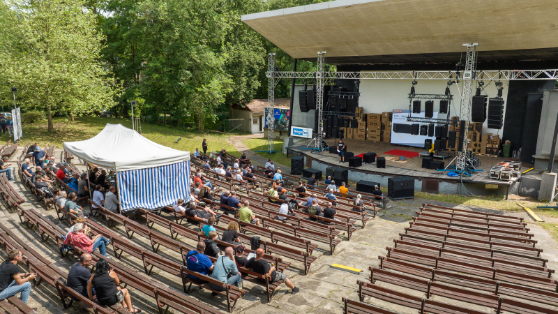 Naše unikátní prezentační akce, letos výhradně zvukové techniky přinesla příležitost setkání mezi kolegy a porovnání reproboxů RCF, EAW, Megaton a Mackie v reálných podmínkám amfiteátru Houštka v Brandýse nad Labem - Stará Boleslav.