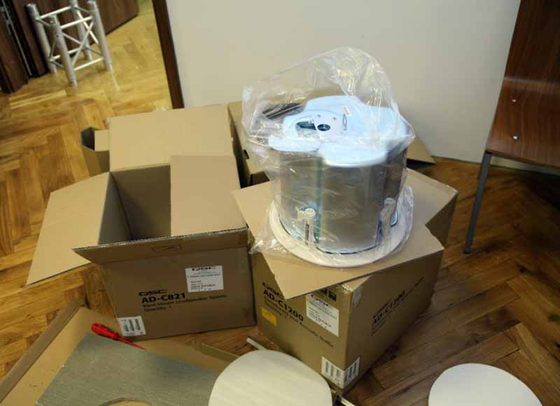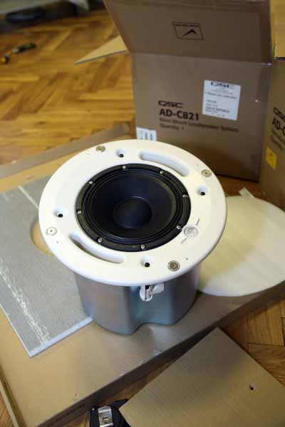 V pražské pobočce stále zdokonalujeme showroom tak, aby se zde dala předvádět nejen světelná technika, studiové monitory, ale také špičkové podhledové reproduktory. Při této instalaci jsme se zaměřili na dva kousky QSC AD-C821.