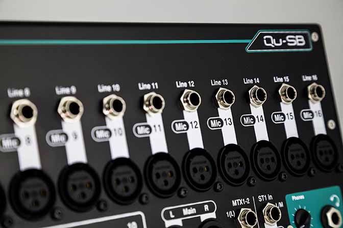 Na horním panelu se nachází 18 vstupů a 14 výstupů. Připojením k jednomu z audioracků pomocí kabelu Cat5 může být Qu-SB rozšířen až na 32 mono vstupů a 24 výstupů. Ve spojení s aplikací Qu-You (pro OS Android a iOS) a s pulty ME-1 pro osobní odposlech je Qu-SB fantastickou volbou pro kapely, které usilují o konstantní zvuk odposlechů na každém koncertu.