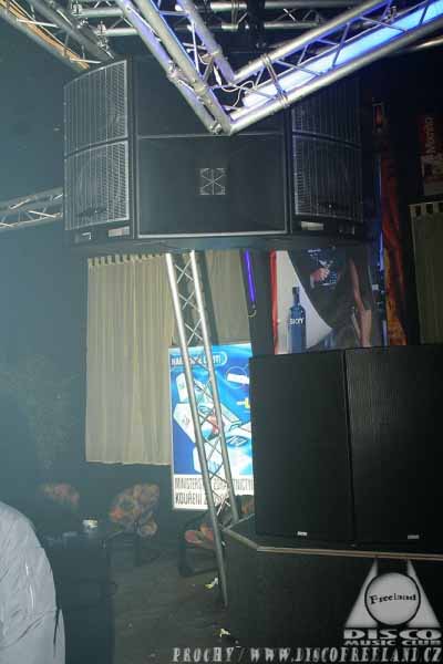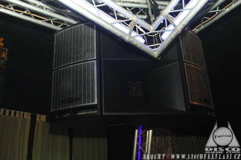 První instalace EAW DC-1 (nejvýkonější box série Dance Club Avalon) v ČR. Basová sekce SB 750, zesilovače QSC, processing EAW UX 8800.