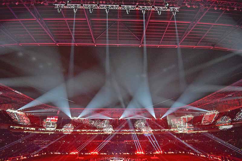 Světla BFML Blade byla umístěna na 10 konstrukcích zavěšených na všech čtyřech stranách po obvodě střechy a až 70 metrů daleko od akce na hrací ploše ... takže potřeba superjasného osvětlovacího tělesa byla kritická.