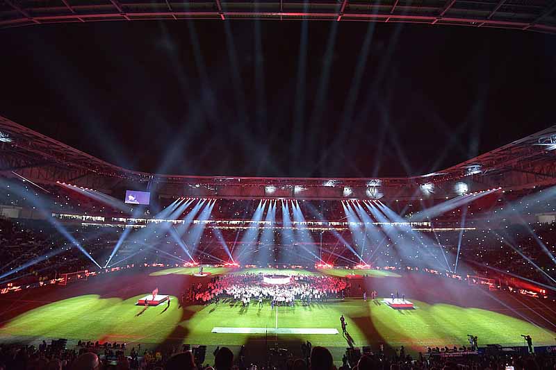 Dodal, že naprogramování těchto světel bylo velmi rychlé a snadné. Akci naprogramoval během několika nočních směn na pultu grandMA, který byl použit pro hodinovou inaugurační ceremonii. Na zavěšených konstrukcích bylo také umístěno 70 kusů LEDWash 1200, které sloužily pro základní nasvětlení hrací plochy i diváků širokou škálou barev s vynikajícím pokrytím.