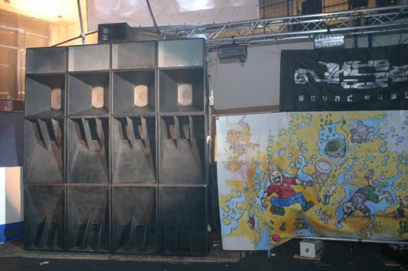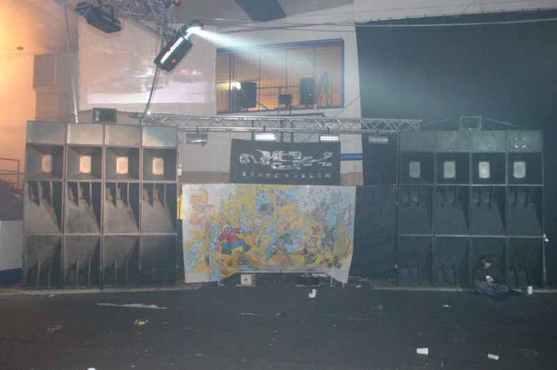 Sportovní hala v Roudnici nad Labem. Méně tradiční pojetí silvestrovské oslavy - techno "večírek", začínající 30.12.2005 ve 22:00 a končící 1.1.2006 ráno, v produkci pořadatele NSK. Hradba reprobeden byla pozoruhodná - osazená měniči RCF a "živená" z valné části zesilovači QSC. Dokumentační foto bylo pořízeno před začátkem silvestrovského veselí v podvečer 31.12., tedy v "klidové době".