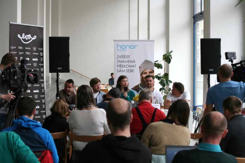 Na tiskové konferenci se kromě Evy Samkové sešli její trenéři a dva noví manažeři Tomáš Kraus a Jirka Tichý, kteří posílili jejich tým a ulevili Evě od běžných marketingových a obchodních starostí. Kromě jejího zdravotního stavu a problémů s vyskakujícím ramenem, s kterým bude muset podstoupit operaci, byly tématy snowboardcrossové kempy, škola, sponzoři, plány do další sezóny a především bilance v medailích a číslech proběhlé sezóny 2015/2016. Za zmínku určitě stojí Evy získané tři zlaté, dvě stříbrné a dvě bronzové medaile! K tomu druhé místo v celkovém hodnocení.