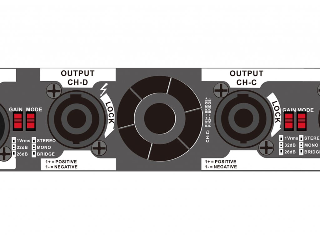 KOBBLE - EM-4122 • digitální zesilovač • pracovní třída D • 4x 1200W/8ohm, 4x 2100W/4ohm, 4x 3500W/2ohm, 2x 7000W/4ohm bridge • konektory vstupů: XLR • konektory výstupů: Speakon • rozměry: 483 x 370 x 44 (mm) • hmotnost: 8,15 kg