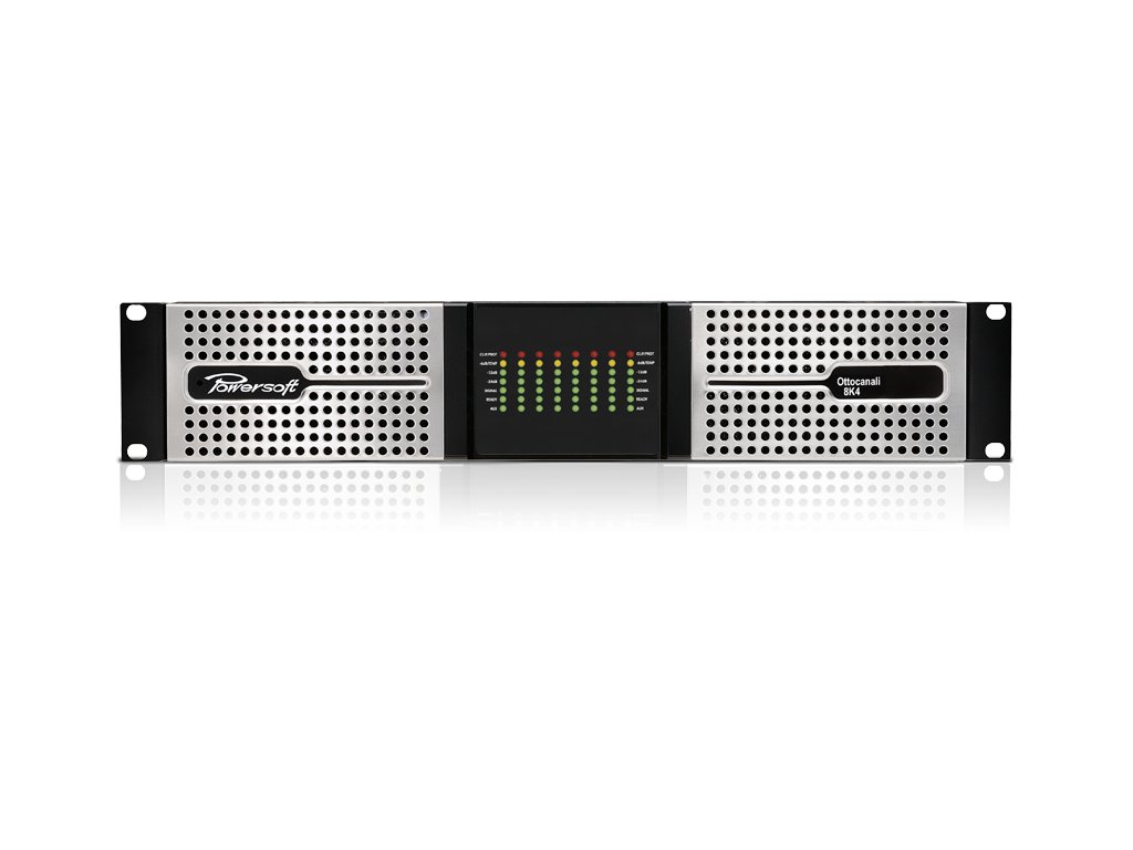 Ottocanali 8K4 je flexibní 8 kanálový výkonový zesilovač se souhrnným výkonem 8 000W/4Ohm. Svojí koncepcí je vhodný pro použití ve vícezónových instalacích. Ottocanali 8K4 je vybaven přepínatelnými main/aux signálovými vstupy a nabízí širokou škálu ovládacích prvků, alarmů, GPI/O, monitorovací funkce stejně tak jako funkce pro modifikaci zvuku. Ottocanali 8K4 disponuje redundantním, universálním spínaným zdrojem vybaveným technologiemi PFC a SRM (Smart Rail Management), které maximalizují účinnost a redukují tak spotřebu elektrické energie.