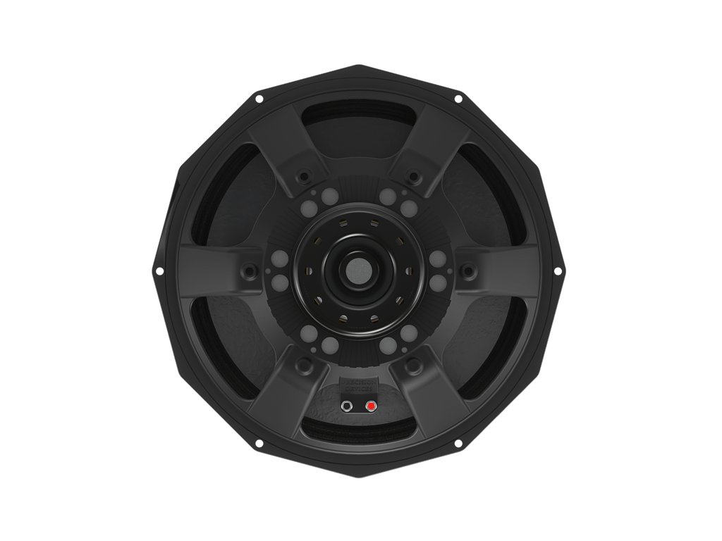 Odvětrávané šasi z litého hliníku a systém pohonu s dlouhým zdvihem a nuceným chlazením vzduchem zajišťují efektivní odvod tepla z magnetického obvodu i mezery cívky. Tato technologie minimalizuje energetické ztráty způsobené zahříváním a dovoluje extrémní zatížitelnost v náročném provozu. Optimalizované laminované silikonové zavěšení udržuje membránu v dokonalé rovnováze a pod kontrolou i při vysokých výchylkách, díky čemuž všechny mechanické části pracují v harmonii pro dosažení nejlepšího možného akustického výkonu.
