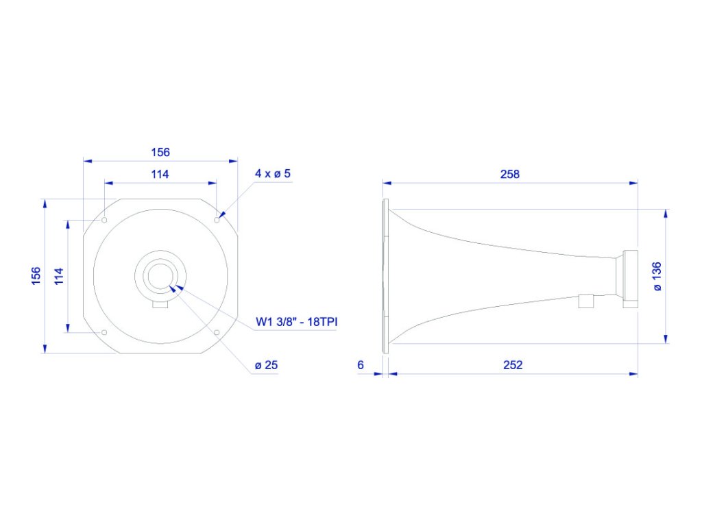 1", 156x156x258mm,800-18000Hz, vyzař.úhel 45x45°, hmotnost 0,21kg, materiál PP, typ exponenciálníDoplňkové parametry